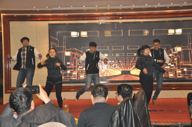 公司總結(jié)表彰會(huì)結(jié)束后,2016年迎春文藝演出閃亮登場。隨著兩位主持人華麗的開場詞,“才藝達(dá)人”精心準(zhǔn)備的歌曲、舞蹈節(jié)目為員工送上了新春的祝福。節(jié)目既突出了節(jié)儉大方的格調(diào),又不失歡快熱烈的氣氛?,F(xiàn)場不時(shí)爆出陣陣熱烈的掌聲。同時(shí),在節(jié)目演出中還穿插抽獎(jiǎng)活動(dòng),邀請公司各領(lǐng)導(dǎo)公開抽取幸運(yùn)獎(jiǎng)。演出精彩落幕后,公司黨委書記沈波立致祝酒詞。整個(gè)團(tuán)拜會(huì)場面,燈火通明,熱鬧祥和,觥籌交錯(cuò),祝語飛揚(yáng),董事長王力明等公司領(lǐng)導(dǎo)高舉酒杯,沿桌為全體員工提前拜年。大家齊聚一起,共同慶祝2015年度取得的輝煌成績,在笑語歡聲中暢想著2016年的美好愿景。