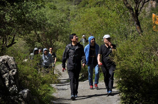 剛開(kāi)始徒步時(shí),大家還是以隊(duì)為單位排列行走,走著走著,因山勢(shì)越來(lái)越陡峭,隊(duì)列就慢慢拉開(kāi)了距離,隨之不斷變換出組合的多樣性。站在一高處,俯瞰山下,逶迤的羊腸山路上,零星點(diǎn)綴著三三兩兩的紅女藍(lán)男,給這片幽靜而清新的山林增添了幾抹運(yùn)動(dòng)的色彩。沿途累了,大家稍歇息片刻,緊接著繼續(xù)往上攀爬。山路一直是沿著察汗河水流的方向逆行而上,越往上走,路越難行,甚至有的路被荊棘叢生的植物遮掩,讓你不得不停下來(lái)仔細(xì)辨析路的方向。耐力和毅力是保證到達(dá)察汗河瀑布終點(diǎn)的能量支撐,往返約7公里的路程,考驗(yàn)著每一位員工的自信力和堅(jiān)持力。黨員同志們更是發(fā)揚(yáng)團(tuán)隊(duì)的凝聚力,大家相互勉勵(lì),不畏艱辛,以一個(gè)帶多個(gè),最終用以付出的汗水收獲了終點(diǎn)的喜悅。站在終點(diǎn)的制高點(diǎn),大家一起拍照,一起狂歡,一起感受瀑布的飛花四濺,一起領(lǐng)略察汗河的詩(shī)情畫(huà)意。